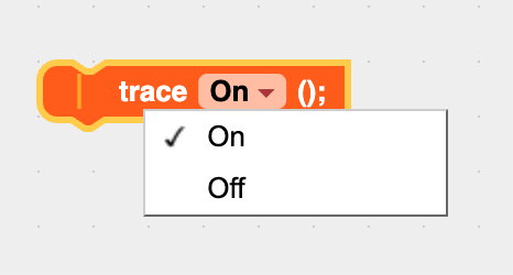 When using non-blocking blocks, it is a good idea to turn off the robot’s trace line. This helps everything run more smoothly, especially if more than two robots are moving at once. You can turn off the trace with the trace on/off block. ![]()