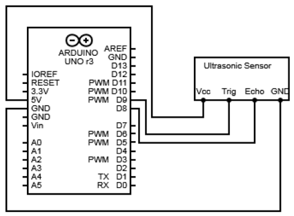 Connecting the ultrasonic sensor to the Arduino: The circuit diagram for connecting the ultrasonic sensor to the Arduino board is: